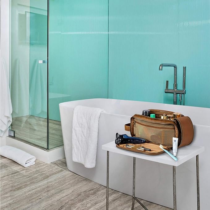 - WATER RESISTANCE STURDY MATERIAL: Exceptionally well built, the toiletry bag is made of PU leather, water-resistant nylon lining to keep moisture out of the bag. Premium zipper and reinforced seams are also implemented for long-lasting performance