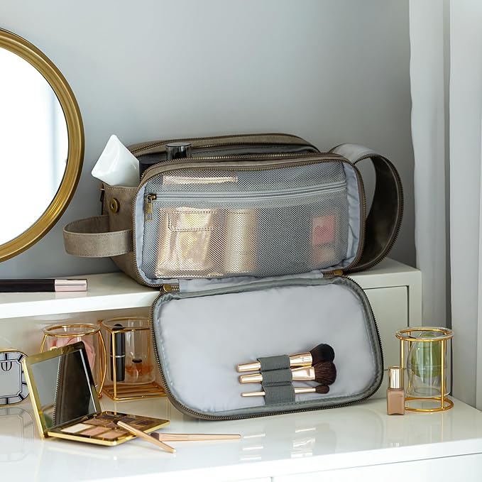 - DOUBLE ZIPPER LARGE OPENING: This long-lasting toiletry bag features a unique double zipper design, which allows for easy access to its inner contents. Simply pull on the connected zip puller for full exposure