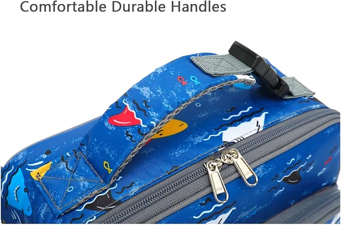 FlowFly Kids Lunch box Insulated Soft Bag Mini Cooler Back to School Thermal Meal Tote Kit for Girls, Boys, Colorful-Shark