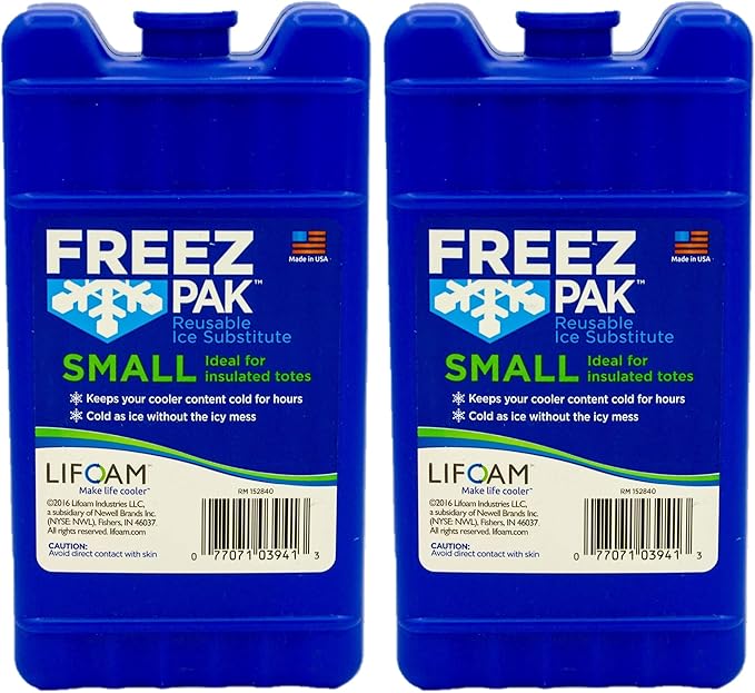 - 2 PACK - Includes 2 Freezer Packs, Reusable Ice Packs - each measures 3.4 inches x 6.8 inches x 1.4 inches.