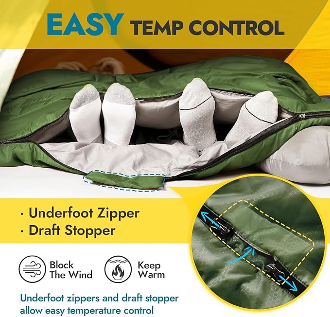 - ♥DESIGNED FOR EXTREME WEATHERS – Stay warm and cozy even when it's 42°F. Our all weather sleeping bags also have a waterproof, weather-resistant design to keep you warm even in extreme conditions and prevent you from any dampness - this is achieved through double-filled technology and S-shaped quilted design