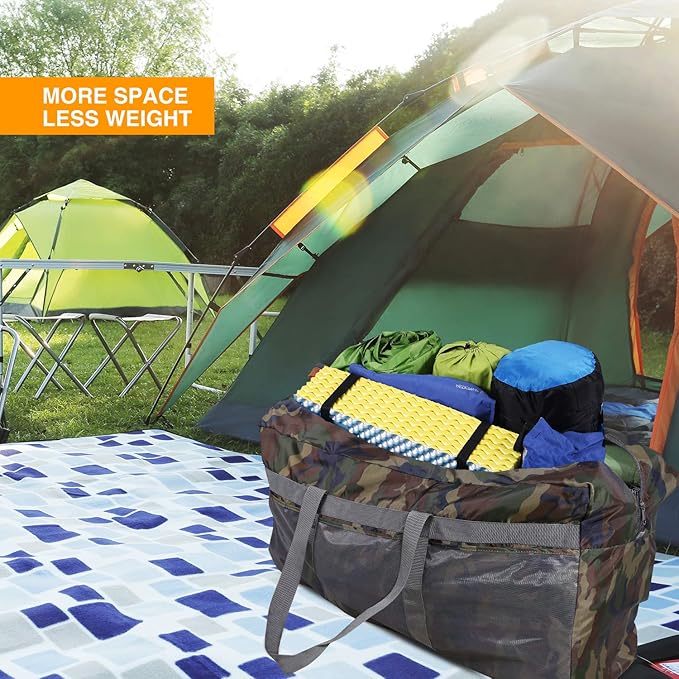 - Large Capacity &Lightweight: Up to 96L with dimensions of 31x12x16"/80x30x40cm; It can be folded into a compact carry pouch of 8.3x6.7x1.58"/21x17x4cm. Weighs only 0.97lbs/440g, and 60lbs weight capacity