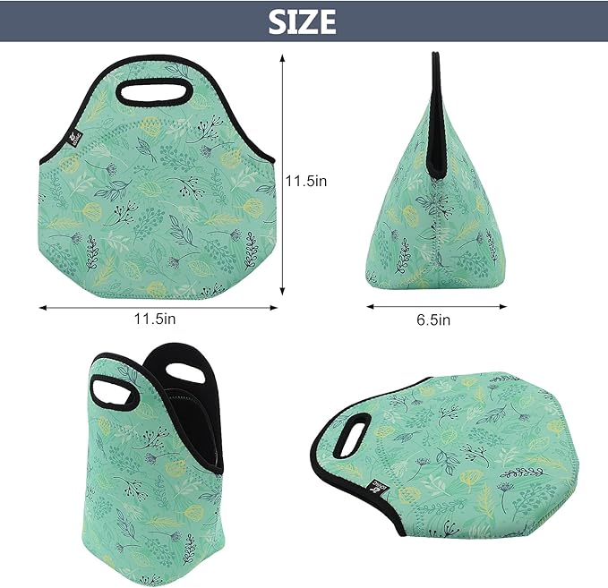 LOVAC Neoprene Lunch Bag, Thick Insulated Lunch Bag - Durable & Waterproof Lunch Tote With Zipper For Outdoor Travel Work School (Leaf)