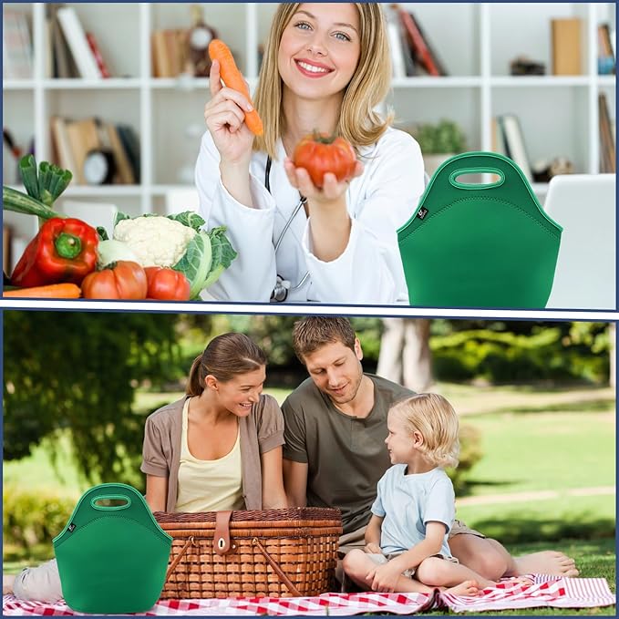 LOVAC Neoprene Lunch Bag, Thick Insulated Lunch Bag - Durable & Waterproof Lunch Tote With Zipper For Outdoor Travel Work (Green)