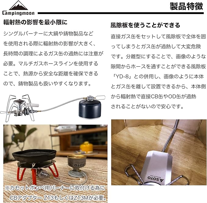 camping moon CAMPINGMOON Multi-Function Gas Hose for EN417 Lindal Valve Screw-on Type Canister and Device Z16,Z17 (JP-Z21-25)