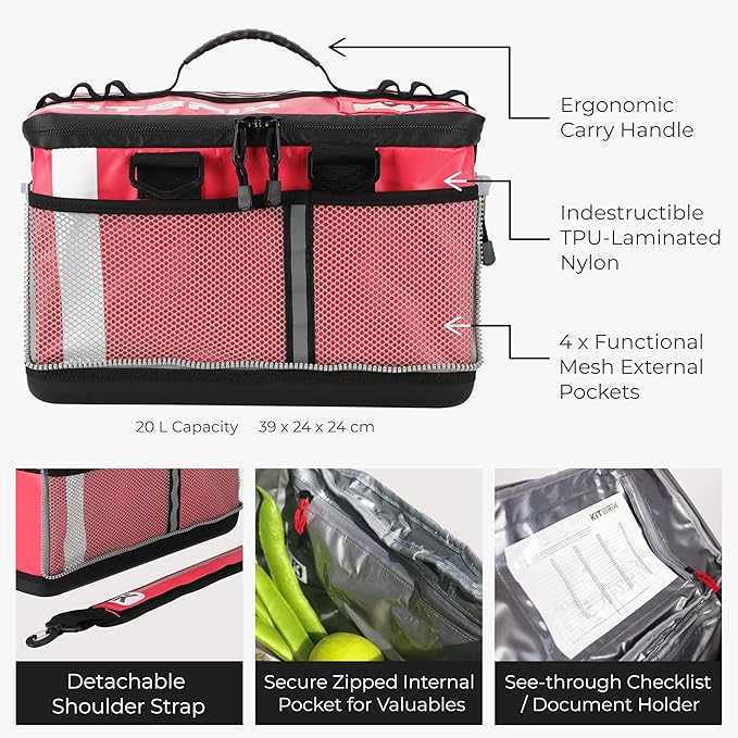 - USE AS HAND LUGGAGE! SECURE & SUITABLE FOR TRAVEL - The Kitbrix waterproof bag comes with fully lockable zips to keep your expensive kit and valuables safe. Can be used as a cabin bag / carry-on hand luggage for most airlines. Measures: 15.3 x 9.4 x 9.4 Inches. Weight: 3.1lbs. Capacity: 20 L