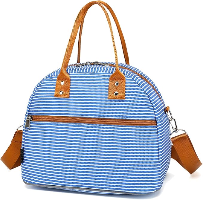 FlowFly Insulated Lunch Bag With Shoulder Strap for Women, Men, and Kids, Large and Reusable, Handle, Freezable Work and School Travel Tote and Meal Prep Organizer,Royal