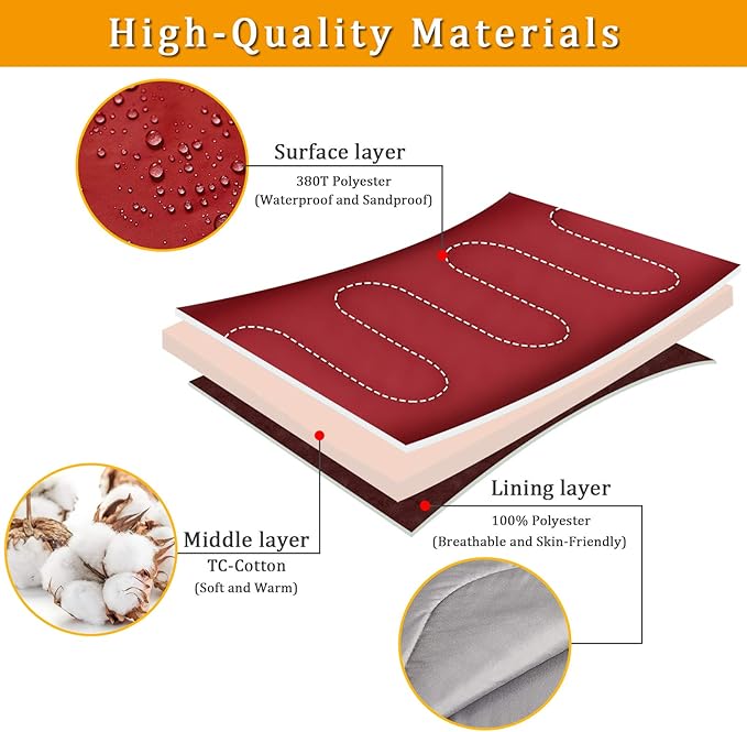 - 【Ultra Comfort & Durable】Outer material: Nylon (Waterproof and Durable), Lining:100% Polyester (Breathable and skin-friendly), Premium Polyester keeps the temperature from 55 to 60℉ and provides a ultra-comfort sleep environment to people.