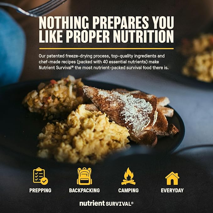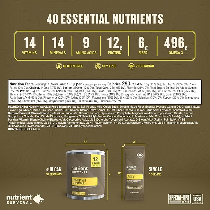 Nutrient Survival MRE Homestyle Scramble Eggs, Ready to Eat Meals (10 Servings) Freeze Dried Prepper Supplies & Emergency Food Supply, 40 Essential Nutrients, Shelf Stable Up to 25 Years, One Can