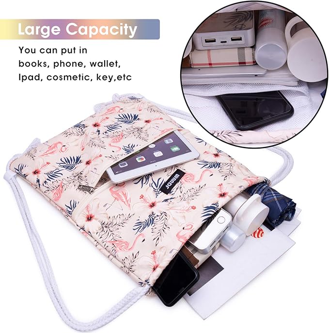WANDF Drawstring Backpack String Bag Sackpack Cinch Water Resistant Nylon for Gym Shopping Sport Yoga (Flamingo)