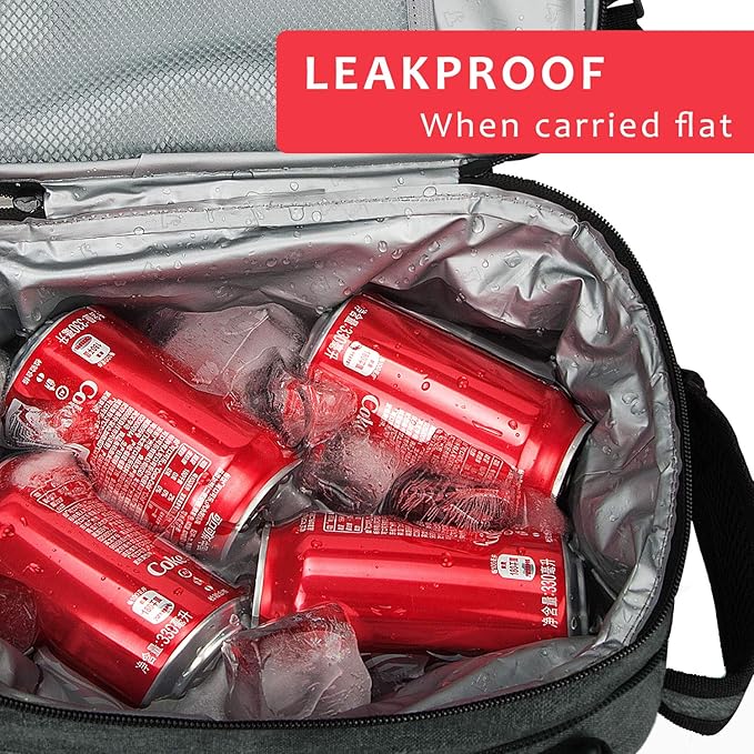 - LEAKPROOF WHEN CARRIED FLAT - The thermal insulation is leakproof on account of adapting heat-melted seam technology, but notice to carry the lunch bag flat so that it can be leakproof, otherwise, the liquid will outflow from the zipper strap.