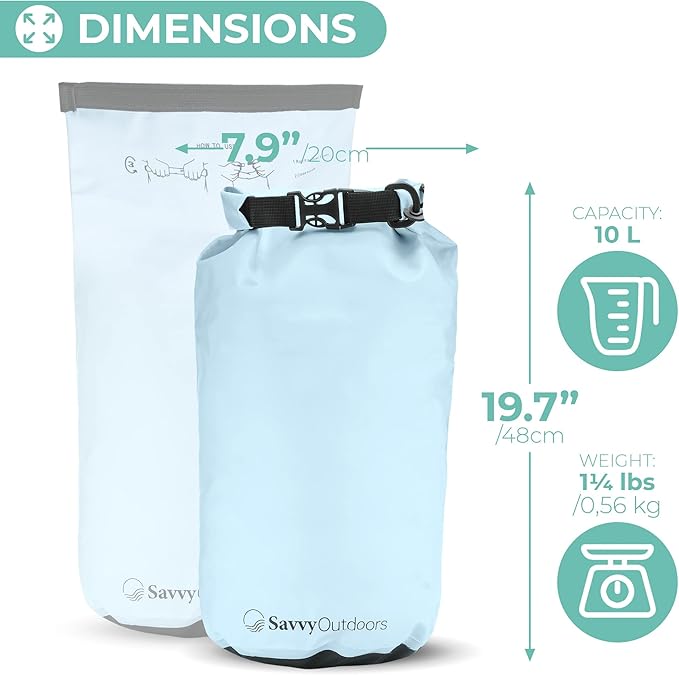 Savvy Outdoors Waterproof Dry Bag - Dry Bags for Food & Gear, Stuff Sacks for Backpacking and Camping Equipment, Waterproof Bag for Beach, Boating, Kayaking, Available in 5L, 10L, 20L, or 30L, Mint