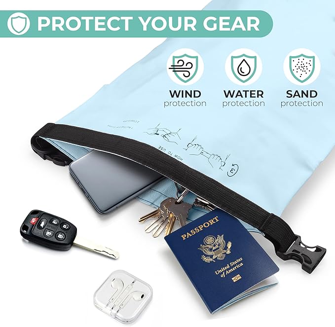 - QUALITY MAKE AND DESIGN: Savvy Outdoors' durable dry sack is made of 100% waterproof polymer. Its seams are electronically welded and it has a roll-up closure /clasp to prevent any moisture, dirt, or sand away from its contents. It could even float if accidentally dropped on water!