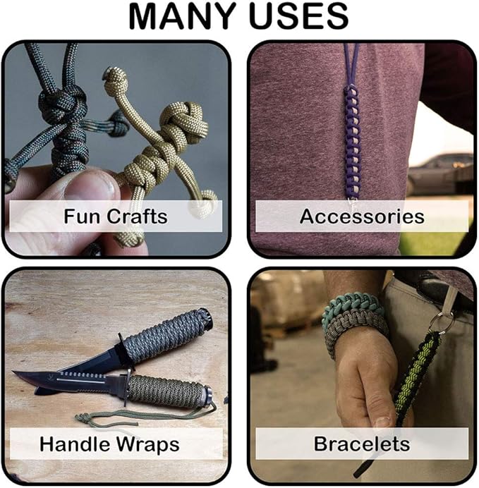 - ✔ GREAT FOR DIY PROJECTS - This paracord’s craftmanship design, prevents fraying with friction, ensuring longevity and maximum strength for every use. It is great for dog leashes, work lanyards, handle wraps, survival supplies, emergency situations, and more!