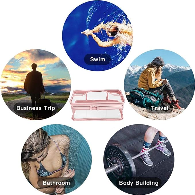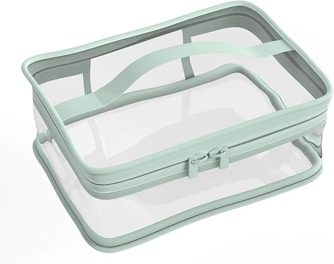 - Size and Quantity: 2 Pcs cosmetic bag, one is pink and the other is green, The size of the transparent cosmetics bag is about (L x W x H): 8.3 x 5.9 x 3.5 inch.