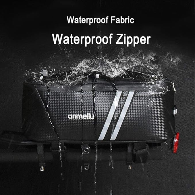 - 【Waterproof Material】 PU fabric: ANMEILU cycling bags is smooth, water resistant, durable. The rainproof cover (included) provides further protection for things inside.You can learn more about our bike rack bag by watching our video.