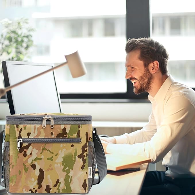 Insulated Lunch Bag for Adult/Women/Men, Reusable Large Lunch Box Cooler Soft Leakproof Tote, Thermal Meal Prep Lunch Pail with Adjustable Shoulder Strap for School/Travel/Office, camouflage