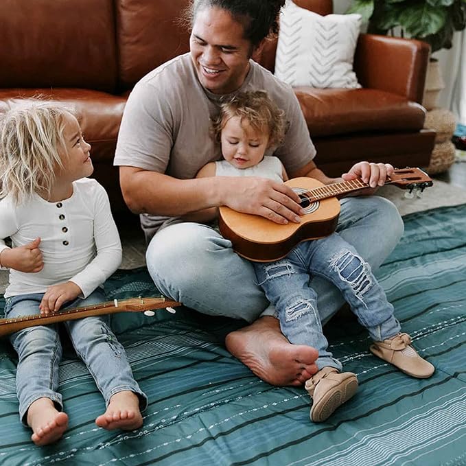 Little Unicorn 5'x7' Outdoor Family Picnic & Beach Blanket | Durable & Water-Resistant Fabric | Compact Fold & Easily Wipes Clean | Zipper Pocket (Shoreline Stripe)
