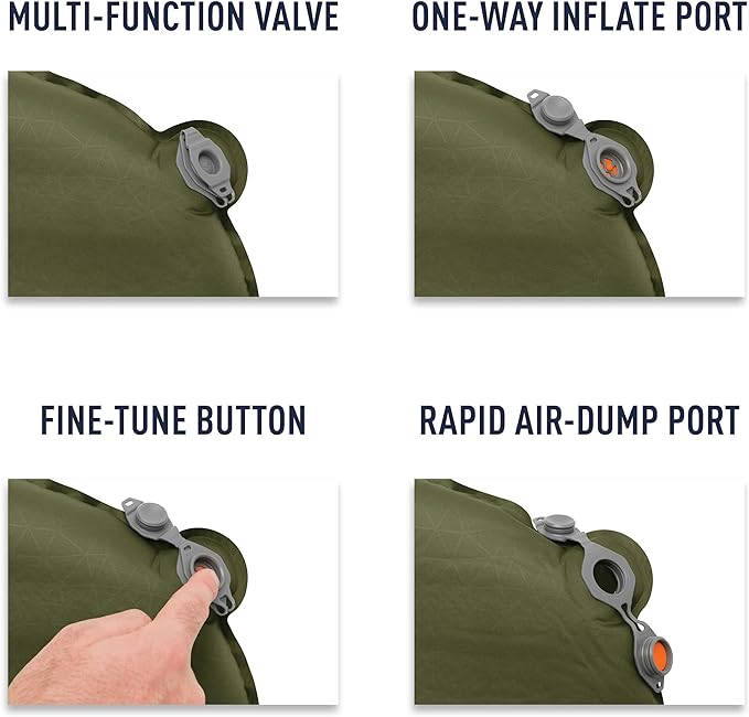 • Multi-function reversible valve for fast and easy inflation, one-way deflation for quick packup, and fine-tuning of air pressure