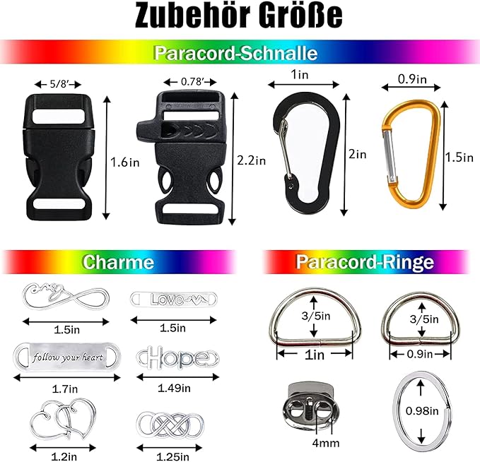 - High-quality Paracord And Accessories: Type III 550 lb paracord rope with a diameter of 4 mm and a 7- strand inner core. It' soft and comfortable; It is very suitable for weaving and outdoor use. The paracord accessories are also made of high-quality materials, which can be used for a long time and will not be easily damaged