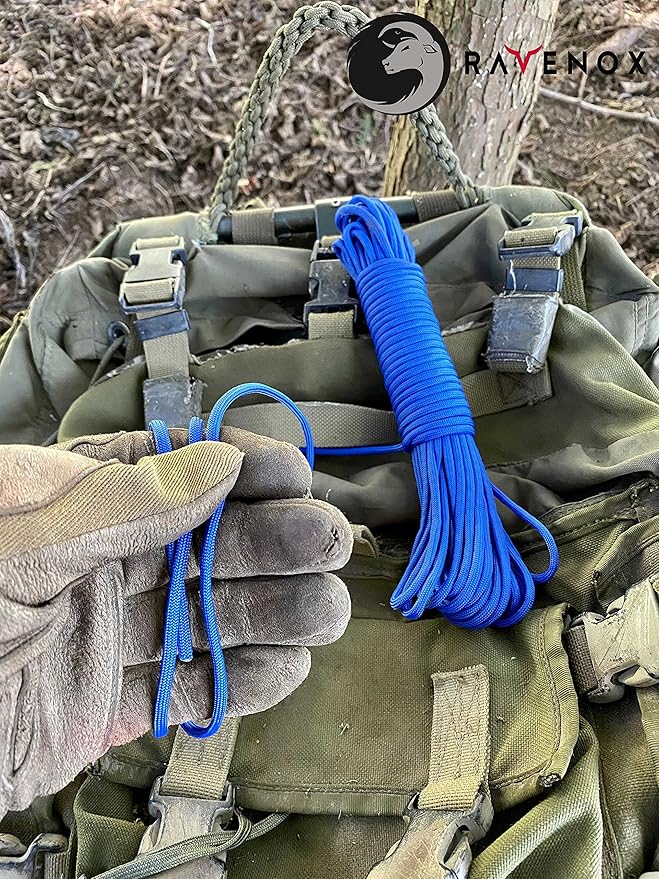 - ✔ 550-CORD FOR MILITARY AND CIVILIAN USE: Strong enough for use by NASA and the military, our paracord is also perfect for everday civilian uses. All-weather Ravenox paracord is the perfect lightweight multi-use tool to add to your bug-out bag or backpack for your next outdoor adventure. This survival cord can be used to create fishing line, tie-downs, replace boot laces or even use the inner core as sewing thread.
