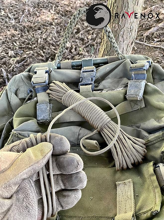 - ✔ 550-CORD FOR MILITARY AND CIVILIAN USE: Strong enough for use by NASA and the military, our paracord is also perfect for everday civilian uses. All-weather Ravenox paracord is the perfect lightweight multi-use tool to add to your bug-out bag or backpack for your next outdoor adventure. This survival cord can be used to create fishing line, tie-downs, replace boot laces or even use the inner core as sewing thread.