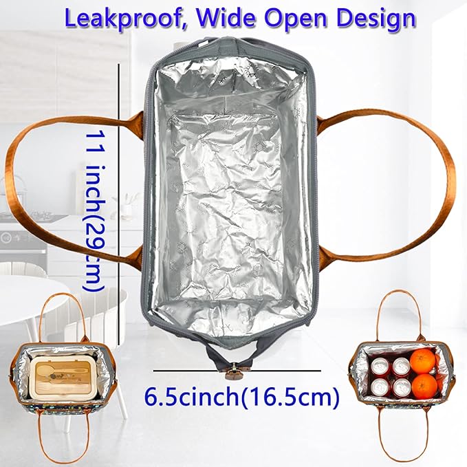 - ✿ Wide-Open Design & Large Size: Our women bag can be opened up to 11"L x 6.5"W by dual zipper closure, you can put into or take out of your lunch or other kinds of stuff horizontally, avoid spilling soup or liquid in the bag. The dimension is:11” L×6.5” W×11” H,it could give roomy storage space you need to hold your favorite meals, delis, and lunch treat. You could fill the compartments or pockets with lunch boxes, food containers, condiments, fruit salad bowls and other essentials.