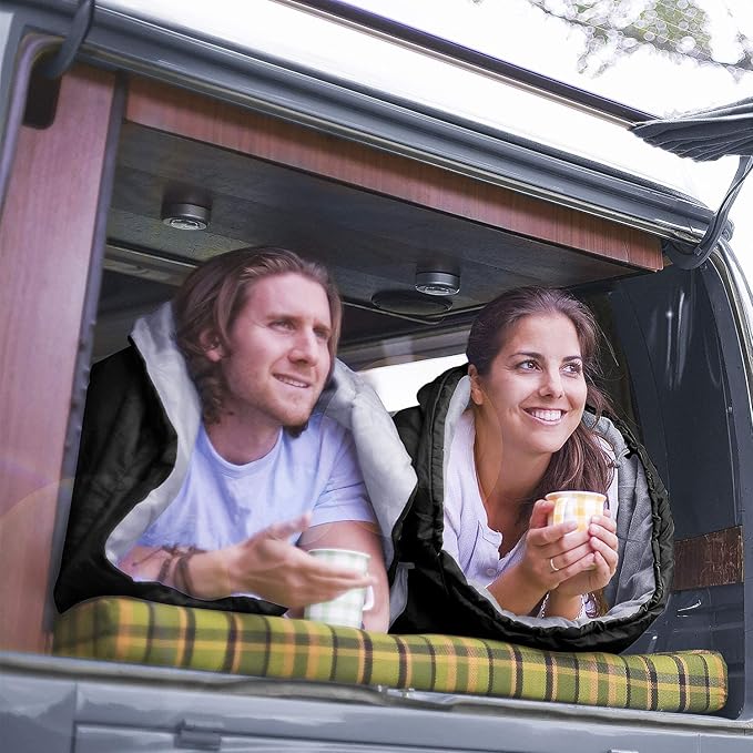 - KEEP WARM IN COLD WEATHER: Stay warm and cozy at 60°F with CANWAY double sleeping bag. Our all weather sleeping bags also have a waterproof, weather-resistant design to keep you warm even in extreme conditions and prevent you from any dampness - this is achieved through double-filled technology and S-shaped quilted design