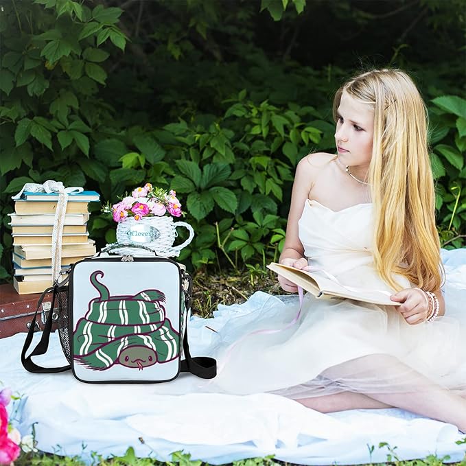 cfpolar Kids Lunch Bag, Green Snake Wear Scarf Reusable Insulated Lunch Box for Kids, Thermal Cooler Lunch Tote Leakproof Lunch Box with Shoulder Strap for School Daycare