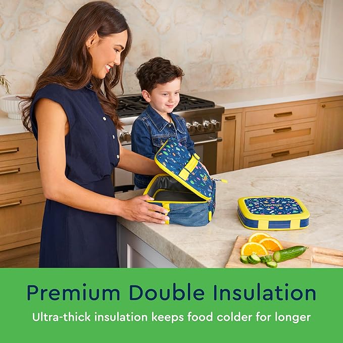 Bentgo Kids Lunch Bag - Durable, Double-Insulated Lunch Bag for Kids 3+; Holds Lunch Box, Water Bottle, & Snacks; Easy-Clean Water-Resistant Fabric & Multiple Zippered Pockets (Space)
