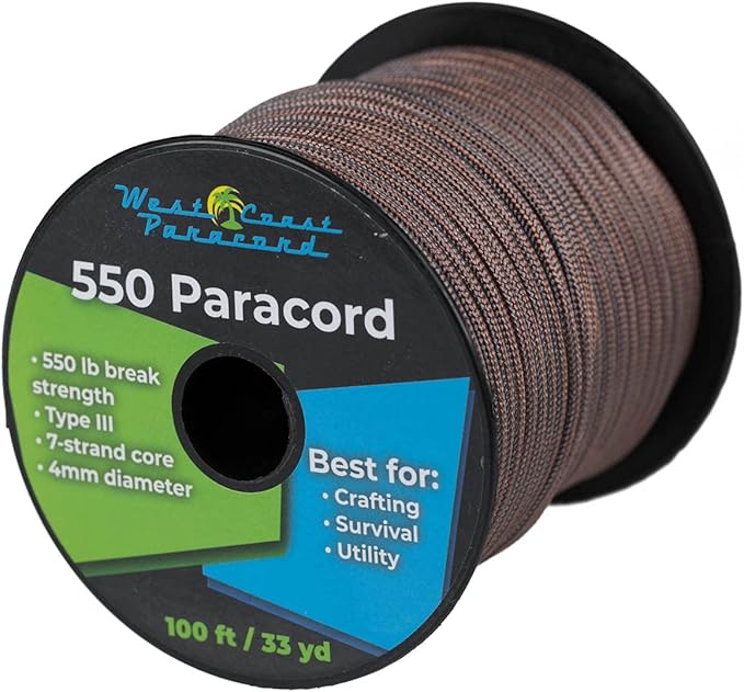 West Coast Paracord 100, 50 Feet 550 Lb. Paracord Parachute Rope Great for Outdoors Camping, Storage Kayak Utility Spool Many Colors