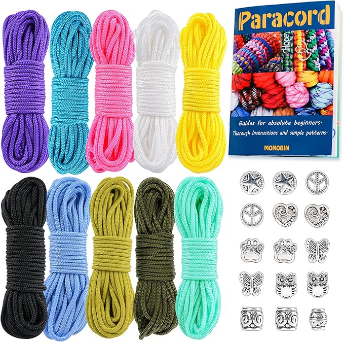 MONOBIN Micro Paracord,2mm 10Colors 20FT Paracord Combo Kit with Paracord Instructions and Charms for Making Paracord Bracelets, Lanyards, Jewelry Making