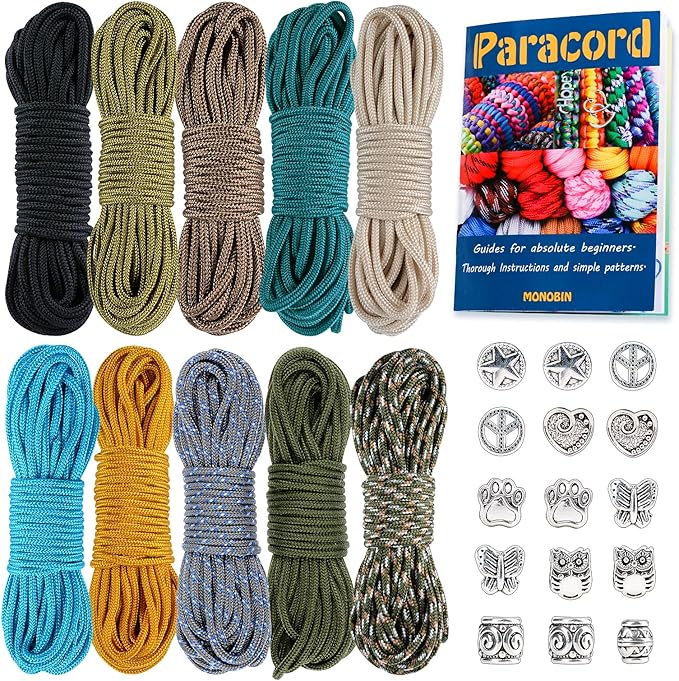 - 2mm Micro Cord Combo Kit: This paracord kit consists of 2mm paracord rope, with a total of 10 colors, and each color is 20 feet long; A paracord instruction booklet and 16 paracord charms are included in the package to help you quickly start your weaving project; This kit is an ideal choice for small DIY projects