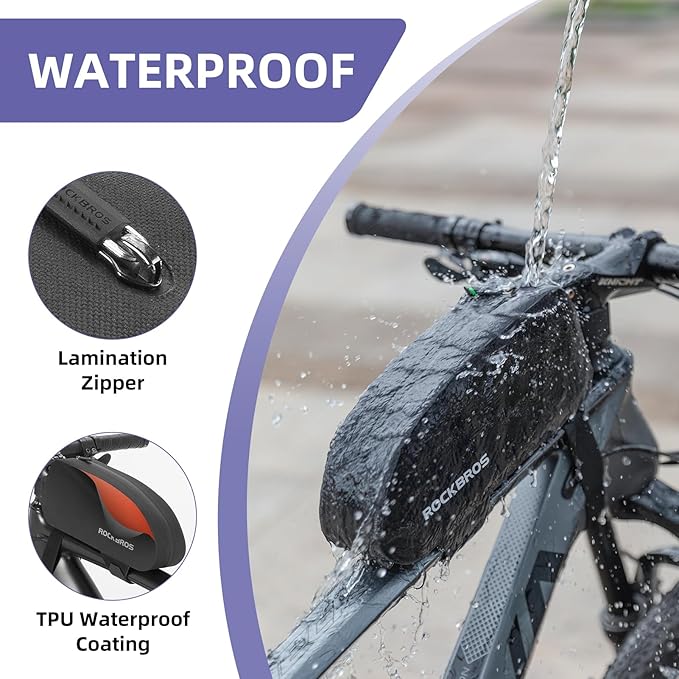 - WATERPROOF: Surface material of this frame bag is TPU material, and adhensive waterproof zipper. The bag inside would not be wet, you can have a cool riding