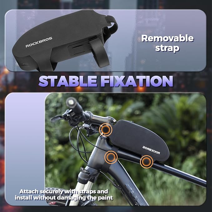 - EASY TO INSTALL: Adjustable hook and loop design, suit for more size MTB road bikes. Install and release the top tube bag quickly and without any tools