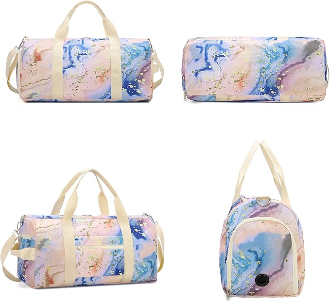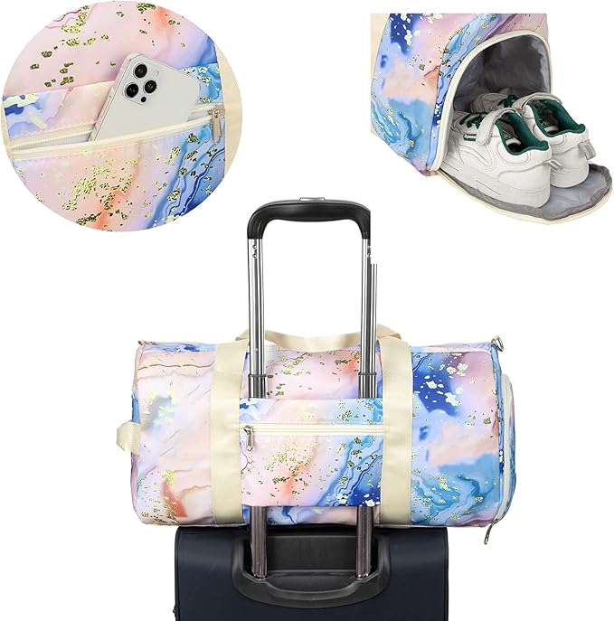 - [Perfectly sized & Design]The duffle bag size is 18.1 L x 8.7 W x 9.1 H Inch,Pink with popular gold foil design is very suitable for women and girls, good carry-on size for airplane luggage or overnight weekender trips.