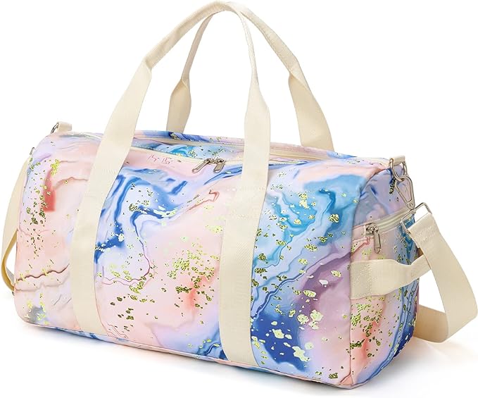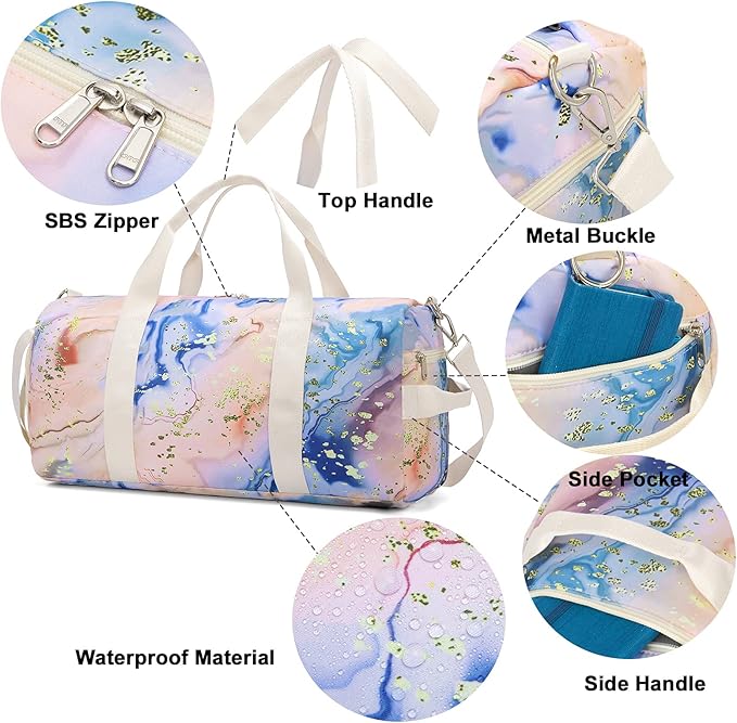 - [Waterproof fabric]This gym bag Made of high quality durable waterproof material and equipped with SBS zipper, the fabric is breathable, wearing-resisting for girls teens.The foldable bag can be used on sports, such as tennis, dance, golf, swimming, travel, yoga, camping and other outdoor activities.