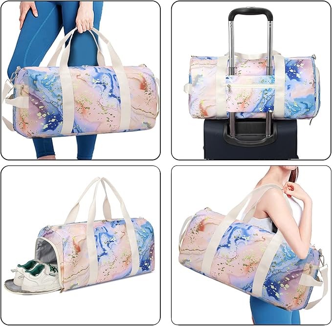 - [Multifunctional pockets]The small sport bag with shoe compartment to keep your sneakers and dirty gear separated,other dry & wet compartment Separation to store your sneakers and shoes, swimsuits, toiletries, and wet towels