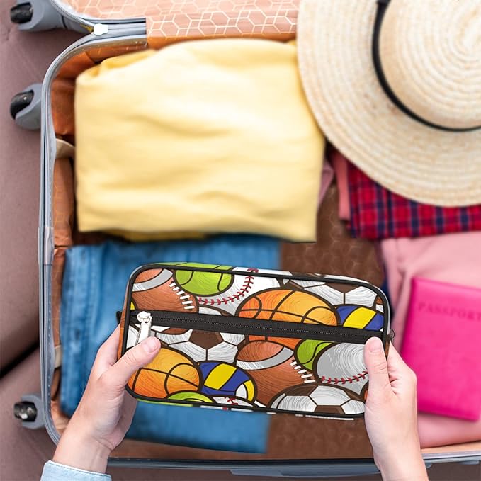 Sport Baseball Portable Travel Toiletry Bag, Volleyball Soccer Ball Dopp Kit Cosmetic Organizer Makeup Bag Shower Shaving Bag for Men Women