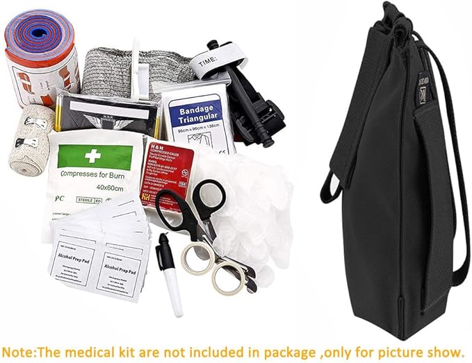 - Slim but can hold many necessary items,you can put 1 C.A.T Tourniquet 1 Israeli pressure bandage 1 pack of Celox 1 chest Needle D 1 chest seal and 1 set of latex gloves and etc in it.