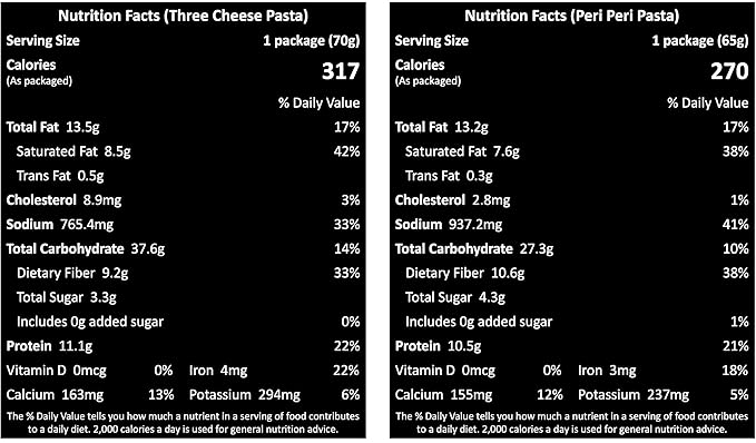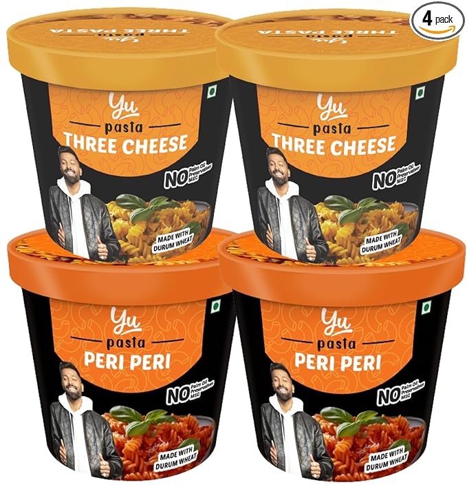 All Natural Pasta Cups – Freeze Dried Food - Pack of 4 - No Preservatives - 100% Natural Ingredients & Vegetarian - Ready to Eat Meals in 4 mins - 800 GMS (2 Three Cheese + 2 Peri Peri) - Yu Foodlabs