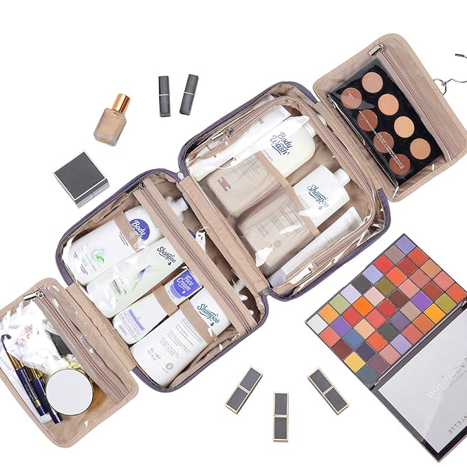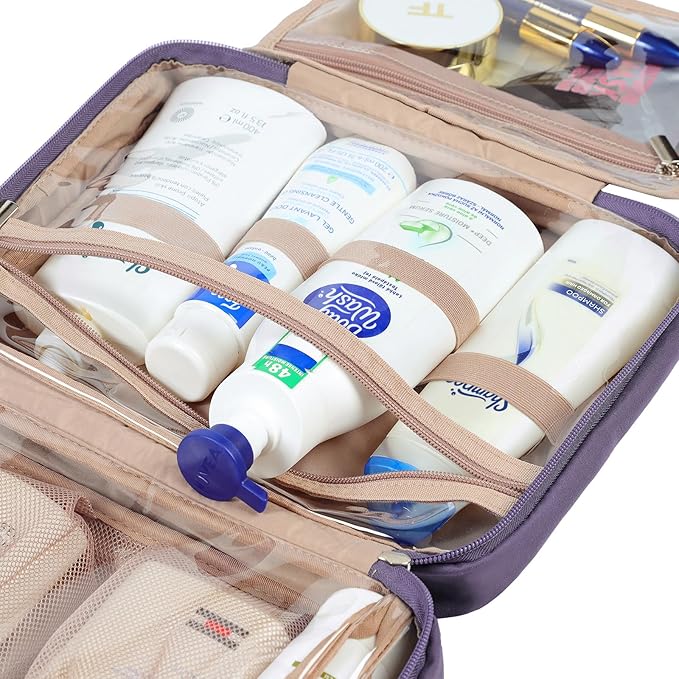 NISHEL Travel Toiletry Bag for Women Large Capacity, Makeup Essentials Organizer, Hanging Case for Accessories, Cosmetics, Purple