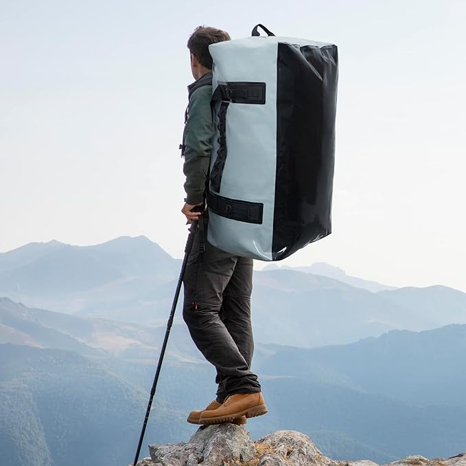 - MULTIPLE USE: Grab handles and webbing loops on all sides, meeting your outdoor needs. With its excellent performance, the large waterproof duffel backpack is suitable for most of rugged outdoor adventure, such as kayaking, boating, motorcycle, fishing, hunting and other activities