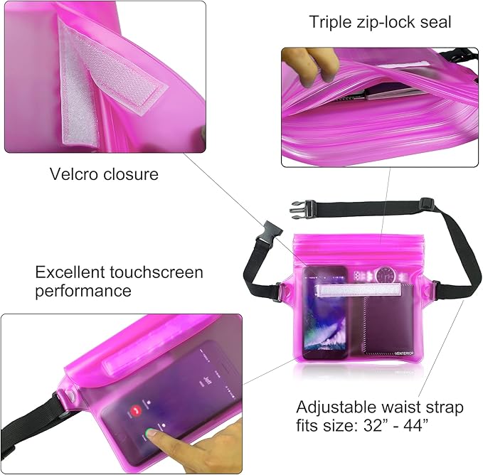 - 100% Waterproof - Triple zip-lock seal and a velcro closure, allow you to dive in the depth up to 32 feet (10 meters) underwater. Keep your phone, wallet, license and other valuables dry while you get totally wet! Protects your phones and wallet from water, snow, sands, and dust.