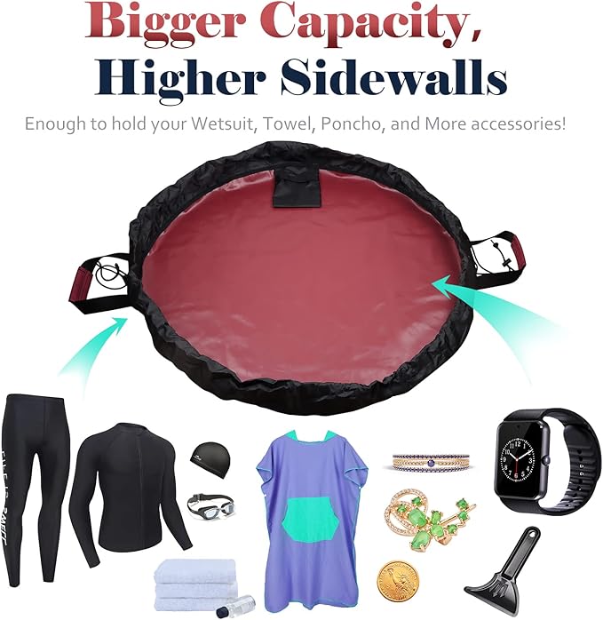 - 【HEAVY-DUTY & BIG CAPACITY】Our wetsuit changing mat is made of high-quality oxford cloth, The flat diameter of the round mat is 86cm/33.85in, it's big enough to let you stand on the mat change clothes with your children together.