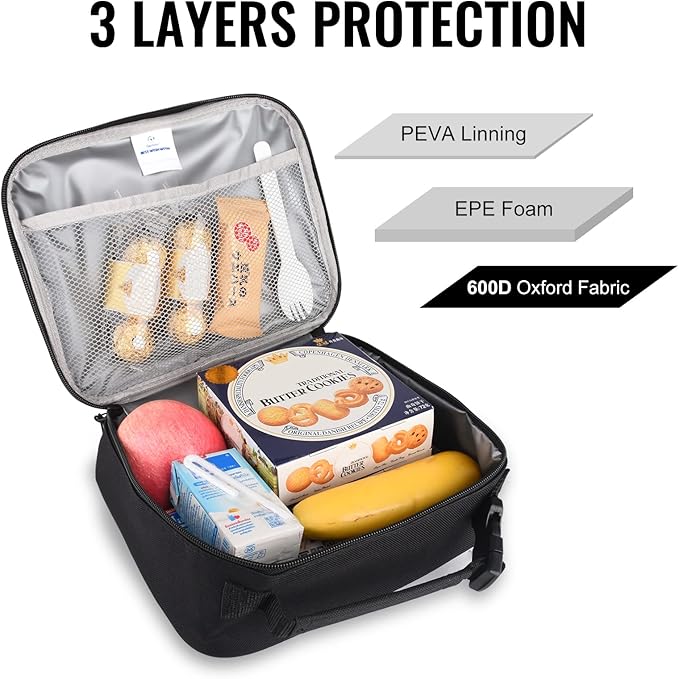 - ๐ฆ๐ฝ๐ฎ๐ฐ๐ถ๐ผ๐๐ ๐๐ฒ๐๐ถ๐ด๐ป - Insulated lunchbox is 9.9" x 7.9" x 3.5".Youโll find it super spacious and will have no problem fitting your drink and fruit inside.Suitable for grade 6+ girls, boys and teens to carry it to school, picnic and camping