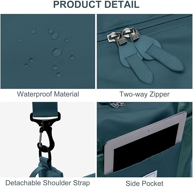 Womens travel bags, weekender carry on for women, sports Gym Bag, workout duffel bag, overnight shoulder Bag fit 15.6 inch Laptop (Large, Peacock Blue)