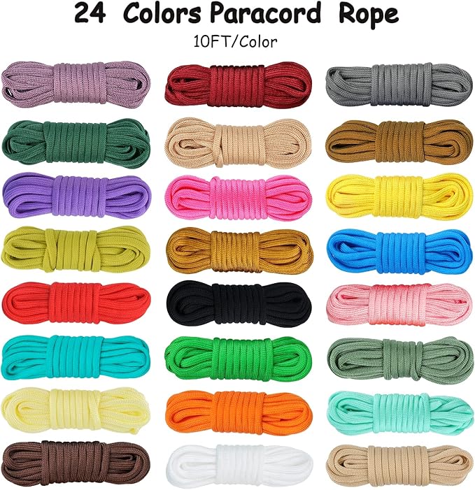 - 24 Colors Paracord Kit: This paracord set comes in 24 colors, each color is 10 feet long; The kit comes with paracord weaving instructions; For those who are just getting started, this is a great package for practicing paracord projects