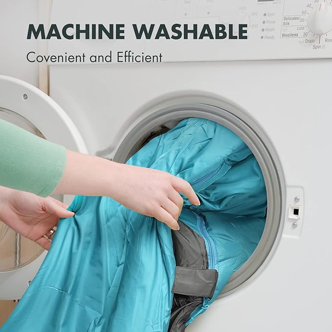 - User-Friendly & Easy to Clean: This roomy mummy sleeping bag with a two-way zipper, which can be unzipped inside or outside, is easy to pull back and forth, and the wrap-around zipper can also adjust the temperature according to your needs. The shell of the sleeping bag and compression sack is easy to clean, in case of heavy soiling, the sleeping bag is also designed to be machine washable