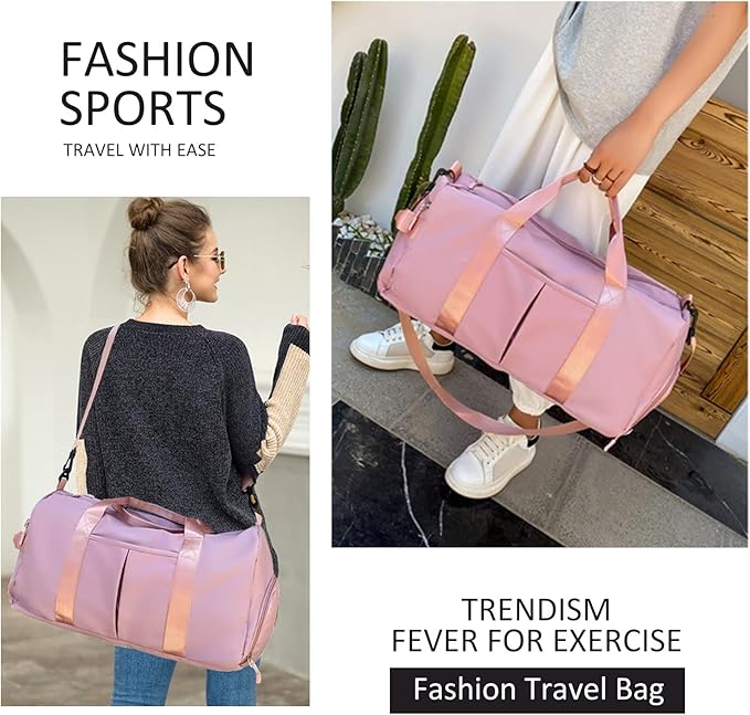 ZGWJ Sports Gym Bag with Wet Pocket & Shoes Compartment, Waterproof Shoulder Weekender Bag for Women and Men Swim Sports Travel Gym Bag Lightweight and easy Carry on Pink